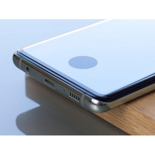 Zaščitno steklo prekrije cel ekran. Prsteni oddtis deluje tudi s steklom. Steklo ima na mestu prstnega odtisa narejen krog, ki omogoča branje prstenga odtisa.
