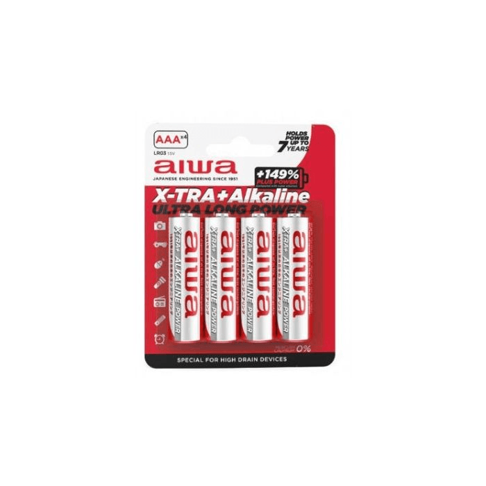 Aiwa alkalne baterije LR03 velikosti AAA 1,5V so na voljo v paketu po 4 kose. Idealne so za digitalne kamere, MP3 predvajalnike, igrače, upravljalnike in igralne konzole, kar zagotavlja zanesljivo energijo za vaše naprave. Garancija traja 1 leto.