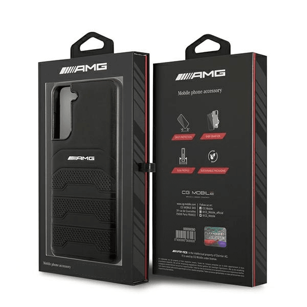 AMG usnjen ovitek za Samsung Galaxy S21 FE G990 v črni barvi je obvezna oprema za lastnike prestižnih vozil. Uradni ovitek zagotavlja popolno prileganje, zaščito pred praskami in ohranja tanko obliko telefona, medtem ko mehak silikon nudi odličen oprijem.