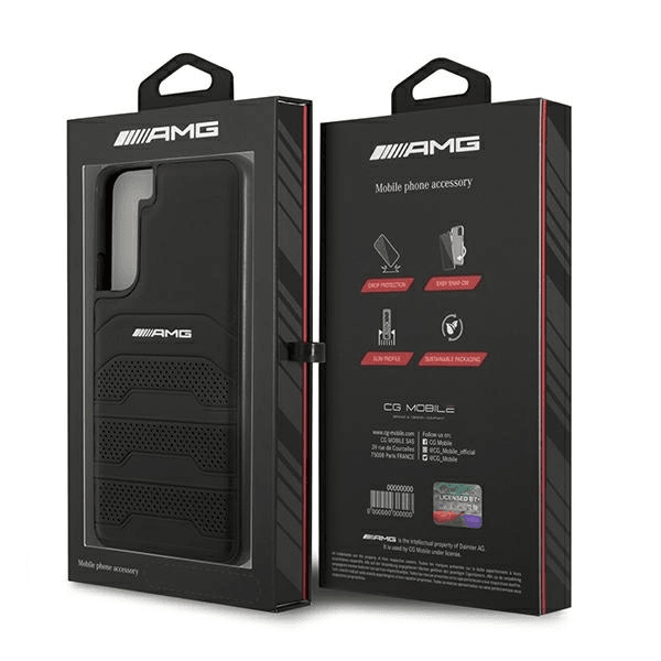 AMG AMHCS22SGSEBK ovitek za Samsung Galaxy S22 5G v črni barvi je obvezna oprema za lastnike prestižnih vozil. Uradni ovitek zagotavlja zaščito telefona pred praskami in se popolnoma prilega napravi, ne da bi povečal njeno velikost. Silikon iz mehkega usnja nudi odličen oprijem.