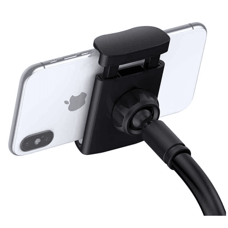 Nosilec za telefon, ki ga s sponko pripnete na mizo ali drugo trdo površino, je opremljen z vrtljivo glavo 360° in vam omogoča postavitev telefona v poljuben položaj, ki omogoča optimalno spremljanje informacij na ekranu telefona.