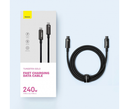 USB-C na USB-C kabel Baseus Tungsten Gold (črn) — CAWJ040201