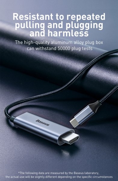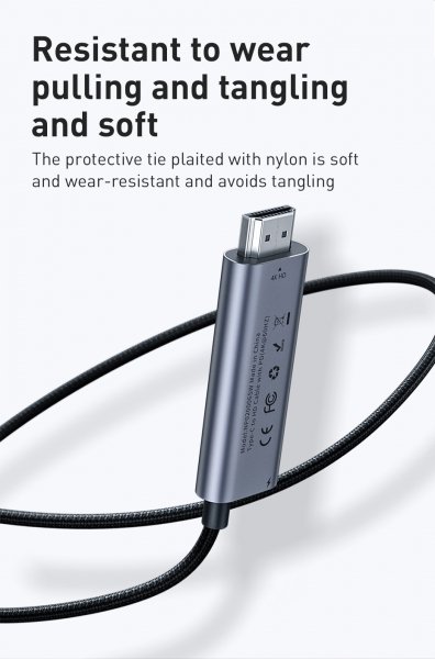 BASEUS podatkovni kabel Type C na HDMI dolžina 1,8 metra omogoča kakovosten prenos slike iz telefona na televizor ali monitor. Kabel omogoča tudi polnjenje naprave med uporabo, kar zagotavlja neskončno uživanje ob gledanju vsebin ali igranju iger ter podpira 4K resolucijo.