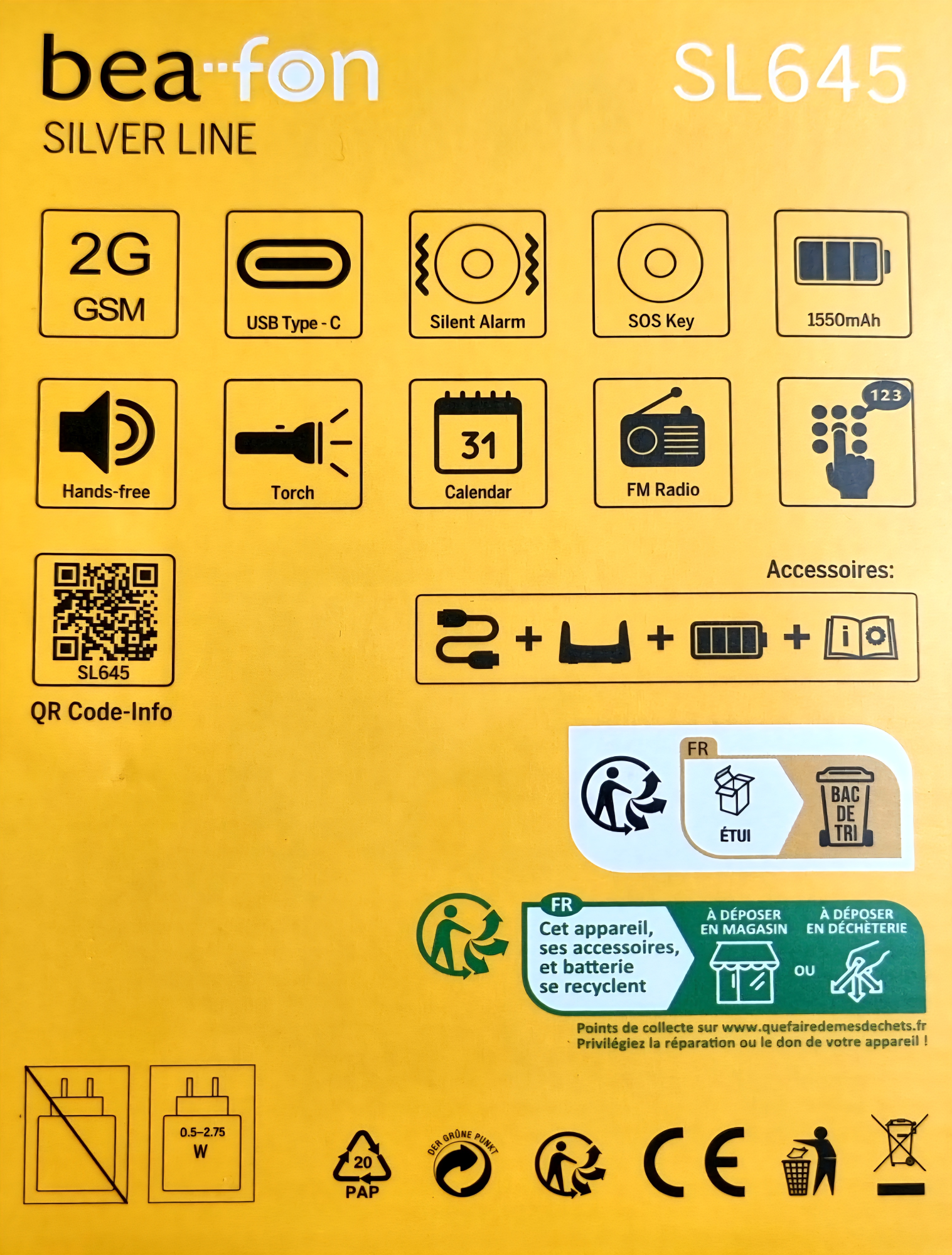 Beafon SL645 je preklopni telefon s preprostimi funkcijami. Telefon je zelo pregleden, saj ima velik ekran 2,8" z velikimi črkami. Posebno velike in pregledne so tudi tipke. Telefon je zelo primeren za starejše uporabnike. Na zadnji strani ima tudi SOS gumb. V primeru stiske, pritisnete SOS gumb in telefon bo samodejno poklical izbran kontakt. Za lepe slike pa bo poskrbela kamera z 3MP.