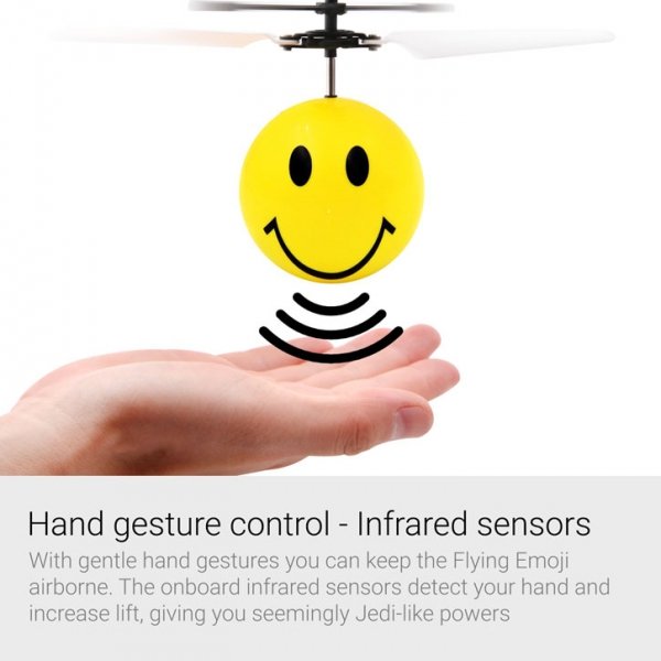 Bitmore leteči EMOJI se upravlja z roko. Letel bo glede na gibe in premikanje vaše roke. Z vgrajenim infrardečim senzorjem na spodnji strani bo zaznal vaše premike roke. Z njim se boste lahko zabavali in lovili vaš EMOJI cel dan.