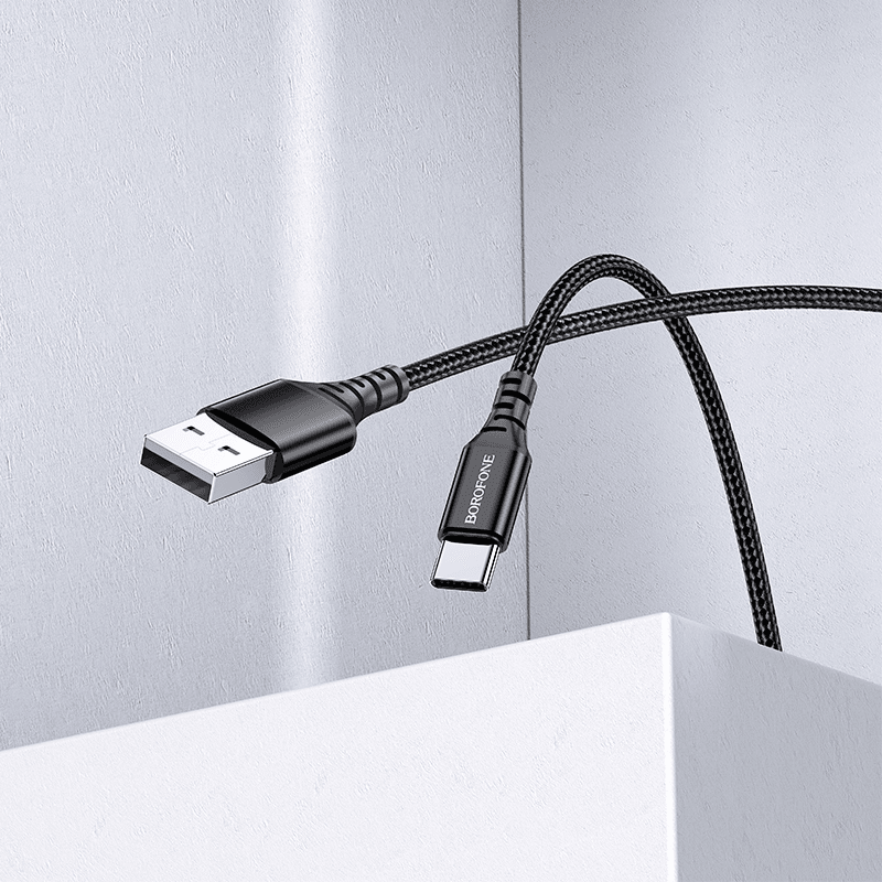 BOROFONE Podatkovni kabel BX54 (Fast Charge) 3,0A vhod Type-C na USB-A 1m, črn, bakrena sredica, odporen na prepogibanje, ekstremno vzdržljiv. Podatkovni kabel, za vse novejše telefone in naprave, ki podpirajo polnjenje s konektorjem Type C. Hitrost polnjenja 3,0A omogoča izjemno hitro polnjenje baterije telefona. Pletena struktura pa izjemno odpornost polnilnega kabla na zunanje vplive. Dolžina polnilnega kabla znaša 1 meter.
