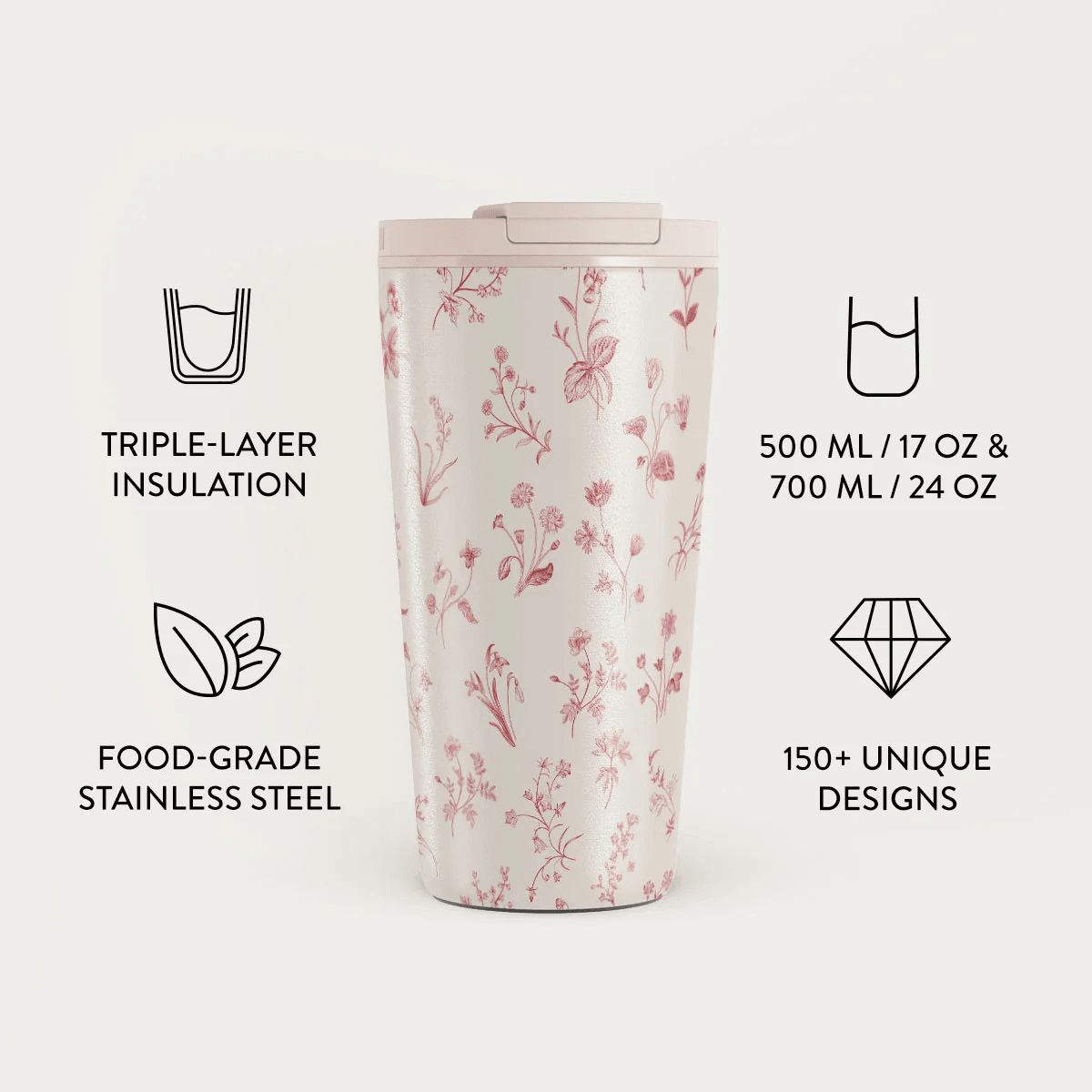 Dvojna stena z vakumom bo poskrbela za odlično izolacijo, tako da bo napitek hladen do 12 ur ali vroč do 5 ur.