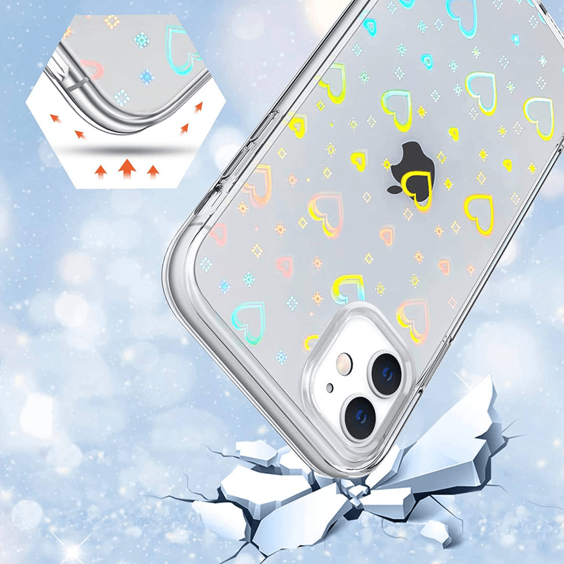 Clear Case silikonski ovitek Hologram za iPhone 14 6.1 - prozoren s srčki