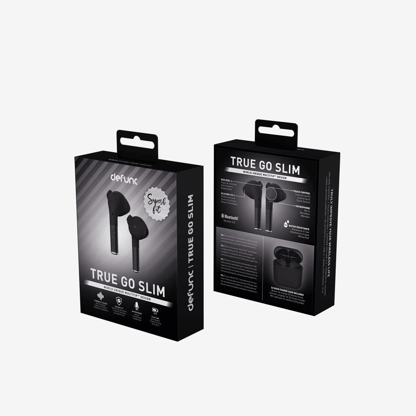 Želite resnično najti slušalke, ki se popolno prilegajo? Potem so slušalke Defunc TRUE GO SLIM prave za vas. S svojim svetovno unikatnim dizajnom MultiTip™, ki temelji na mnenju potrošnikov. Te slušalke združujejo funkcije, ki so najbolj priljubljene pri poslušanju glasbe, med športom inpri komunikaciji. Zato slušalke ponijajo odličen zvok, varno prileganje in udobje. Dodajte še nadzor na dotik, hitro polnjenje, odpornost proti vodi in potu IPX4 ter dodatne športne čepke, in dobili boste vsestranske slušalke v bolj elegantnem, tanjkem dizajnu.