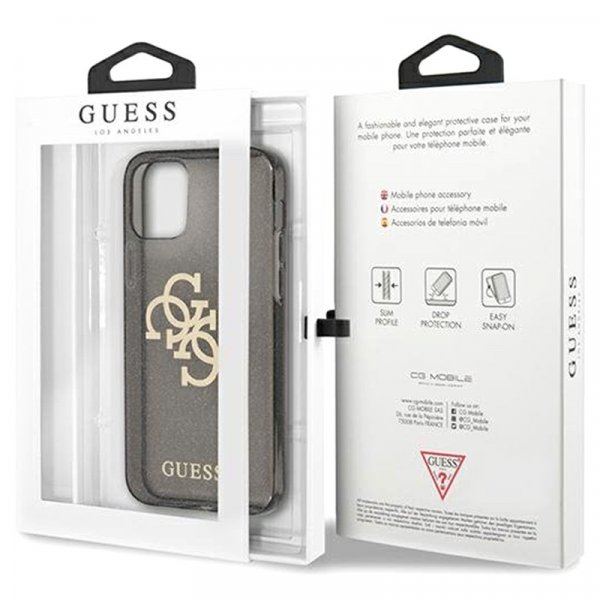 GUESS GUHCP12MPCUGL4GBK Big Logo silikonski ovitek za iPhone 12 / 12 Pro - z zlatimi bleščicami