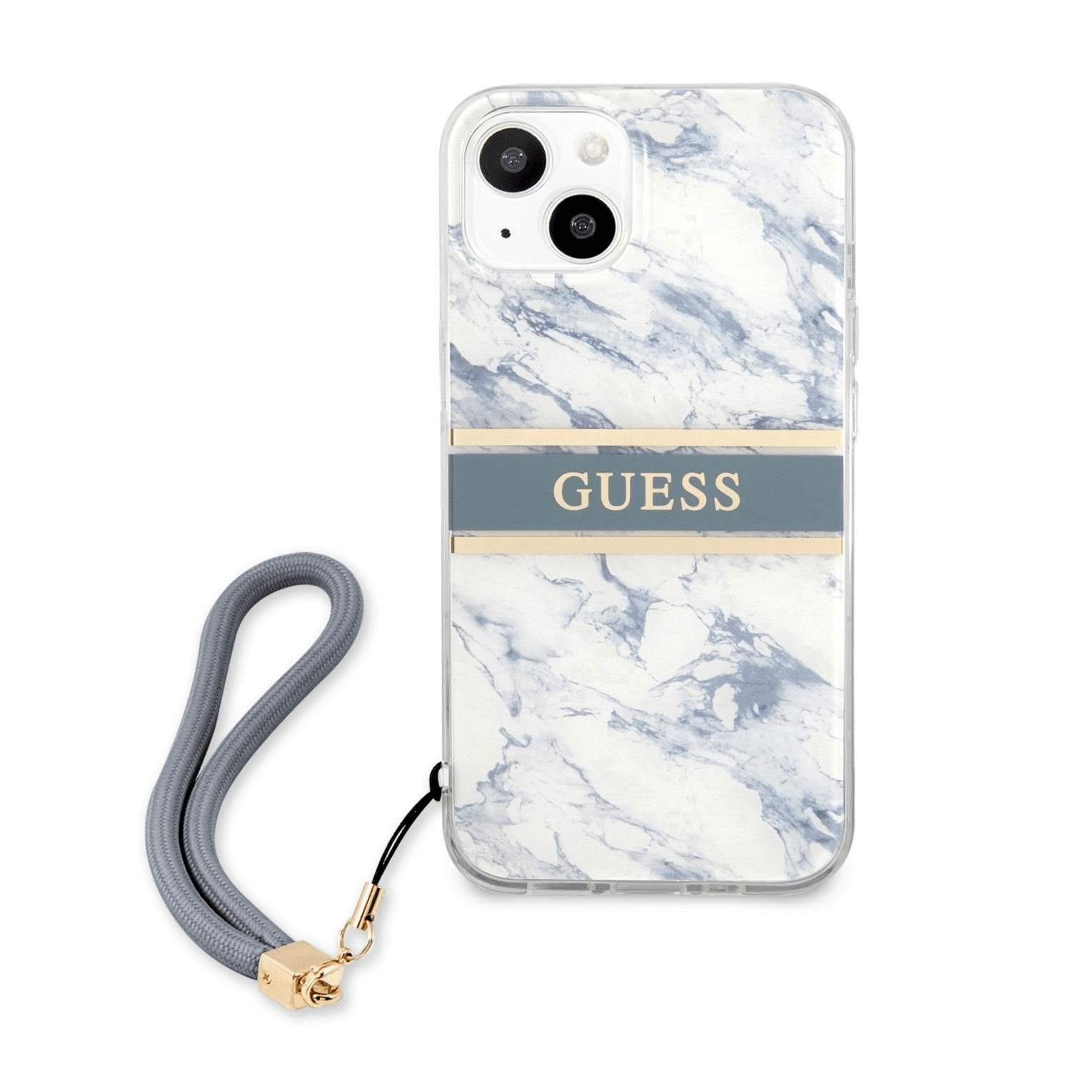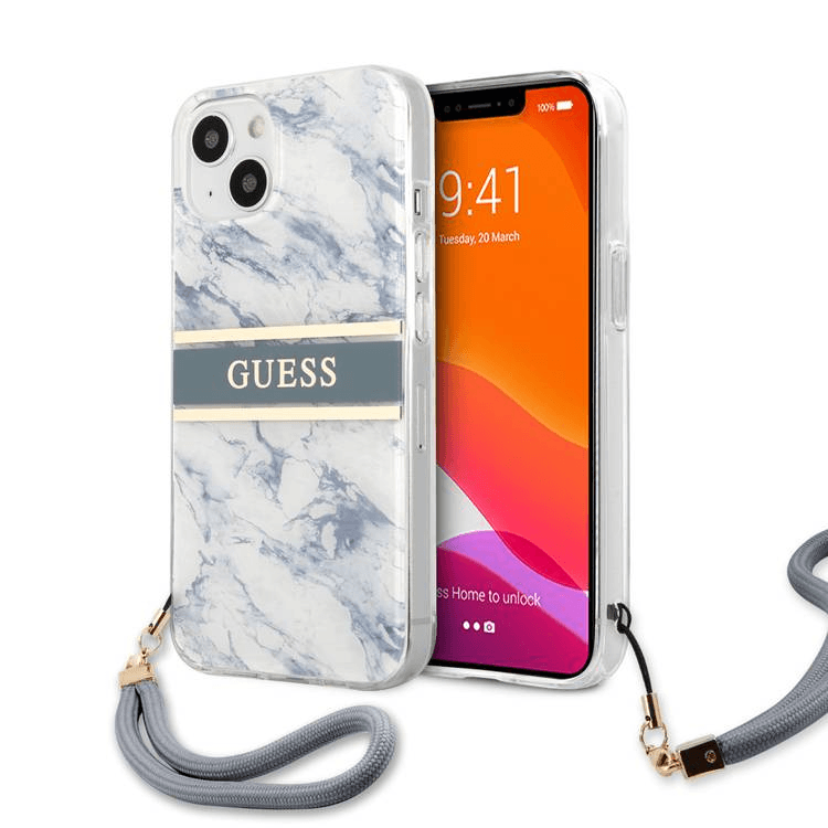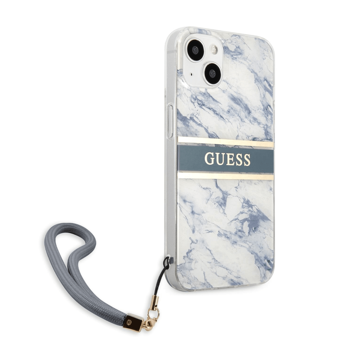 GUESS GUHCP13MKMABBL za iPhone 13 6.1 - moder marmor silikonski ovitek s sivo zapestnico