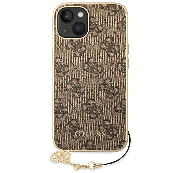 GUESS GUHCP14MGF4GBR silikonski ovitek za iPhone 14 Plus - rjav z obeskom