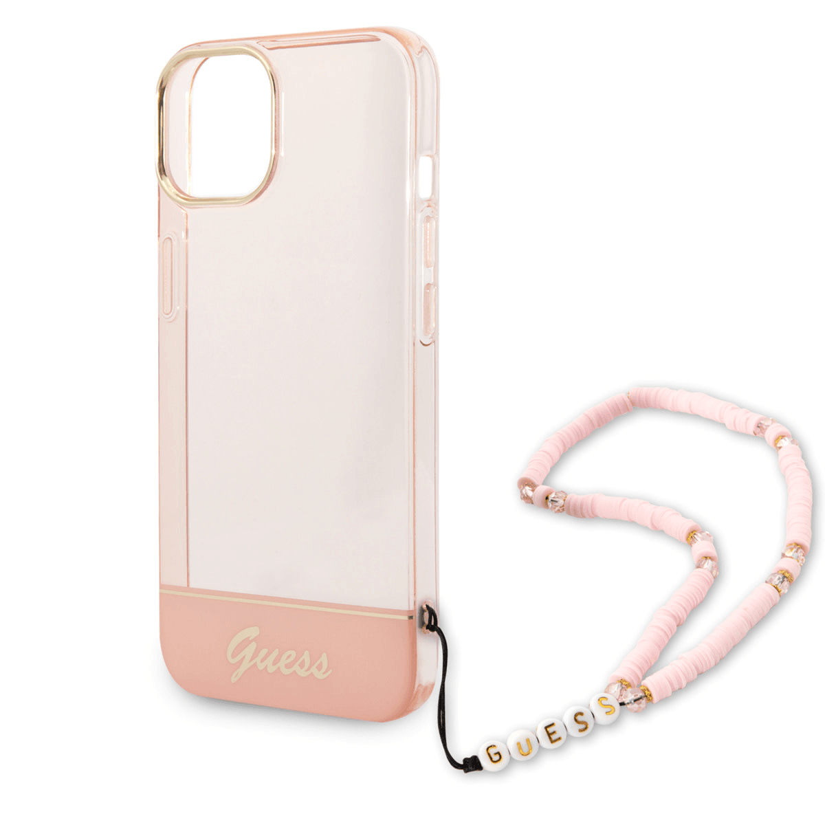 GUESS GUHCP14SHGCOHP za iPhone 14 6.1 - roza silikonski ovitek s perla zapestnico