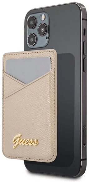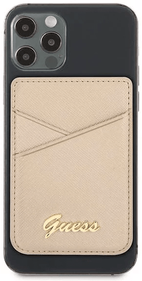 GUESS GUWMSSASLGO ovitek za kartice MagSafe za iPhone 14, iPhone 13 - bež