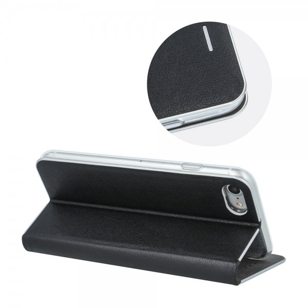 Havana Premium preklopna torbica za iPhone 11 v črni barvi s srebrnim robom nudi odlično zaščito vašega telefona. Elegantna in stilsko oblikovana torbica je opremljena z magnetnim zapiranjem ter prostorom za vizitko, kar jo dela praktično in privlačno.