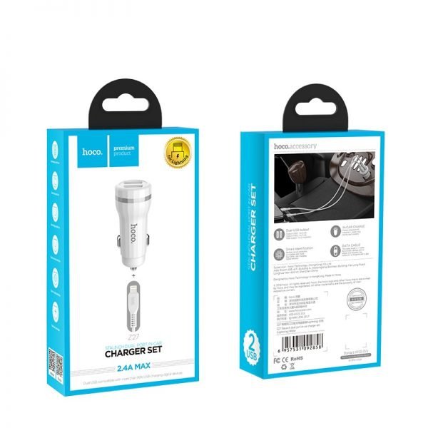 HOCO avtopolnilec Z27, 2,4 A s kablom 1m Lightning iPhone - bel