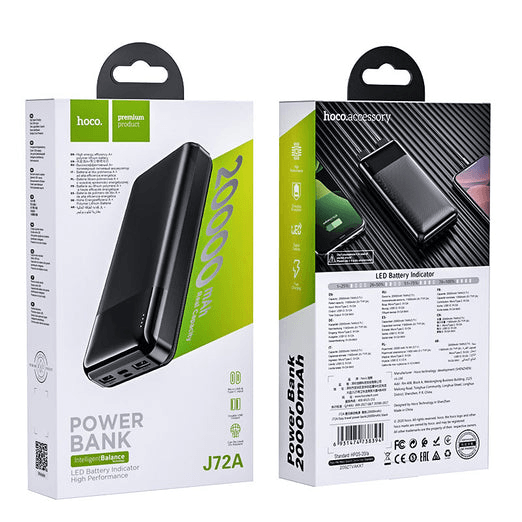 Hoco prenosna baterija J72A powerbank 20000 mAh 2x USB črn