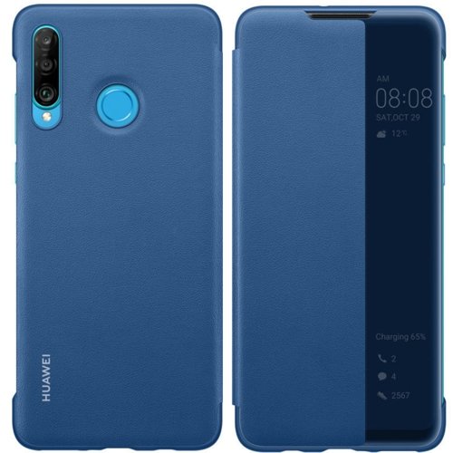 Huawei original preklopna torbica Smart View za Huawei P30 Lite modra z okenčkom