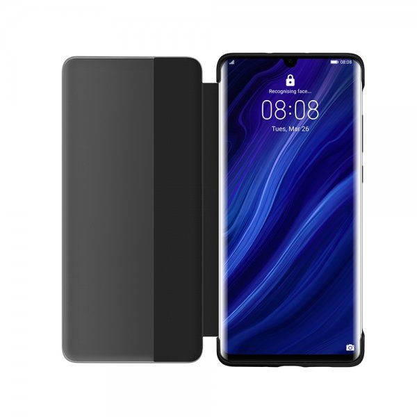 Huawei original preklopna torbica Smart View za Huawei P30 Pro črn z okenčkom
