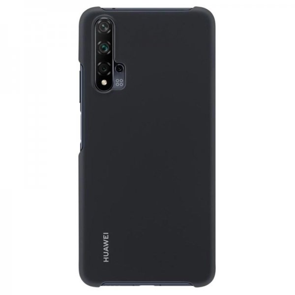 Originalni silikonski ovitek HUAWEI za model Nova 5T in Honor 20 v črni barvi natančno ščiti zadnji del telefona. Izdelan iz tanke PC plastike, ohranja prvotno obliko telefona in učinkovito ščiti pred praskami.
