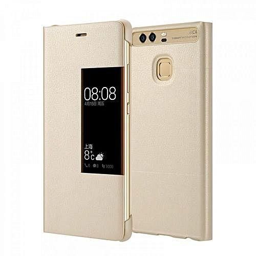 Huawei S-View preklopna torbica za Huawei P9 zlata z okenčkom.