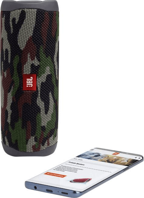 Svojo glasbo poslušajte z zmogljivim JBL Flip5. Lahek Bluetooth zvočnik gre lahko kamor koli.