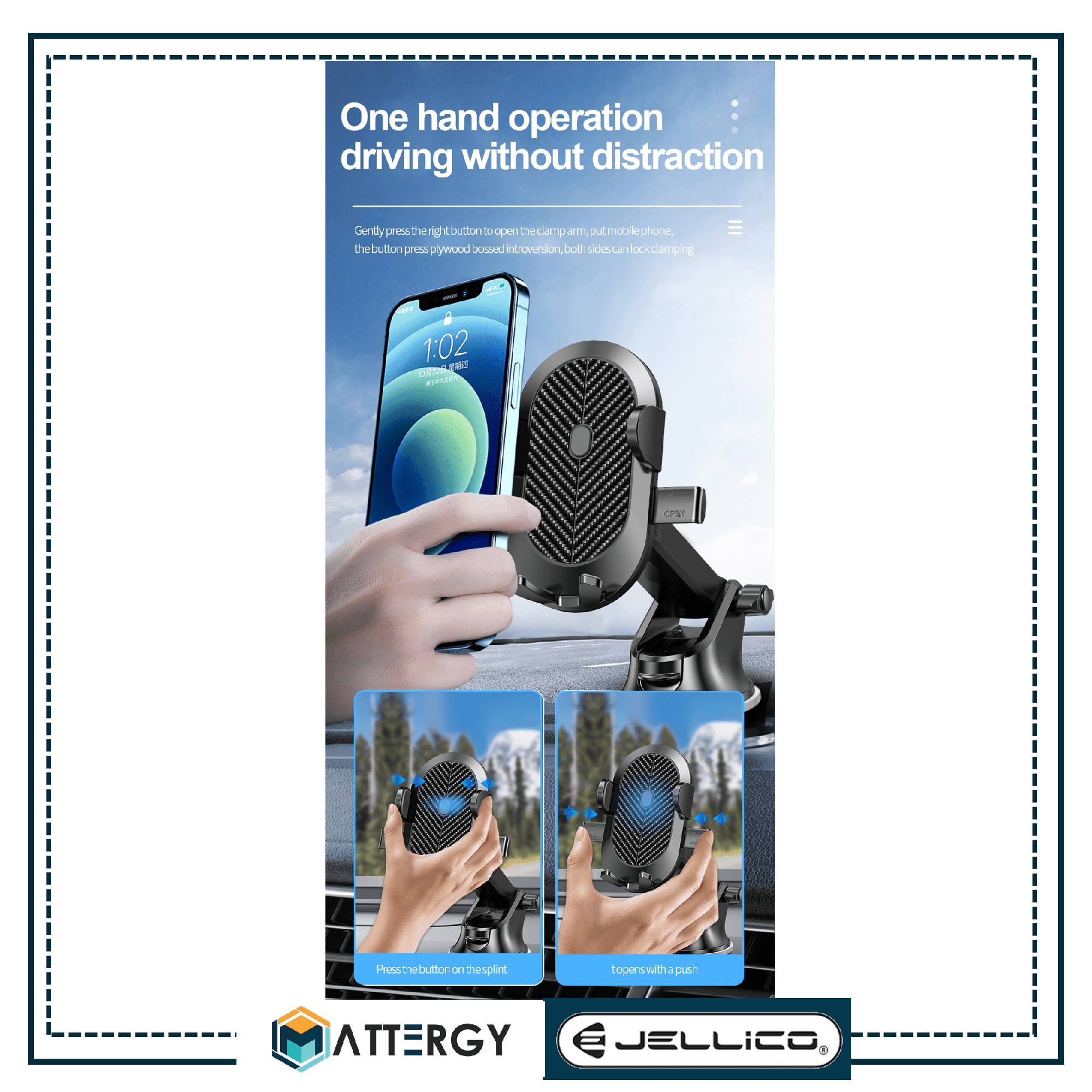 JELLICO Avtonosilec PH9 pritrditev na steklo ali na armaturno ploščo - črn (horizontalna postavitev telefona za nemoteno navigacijo)