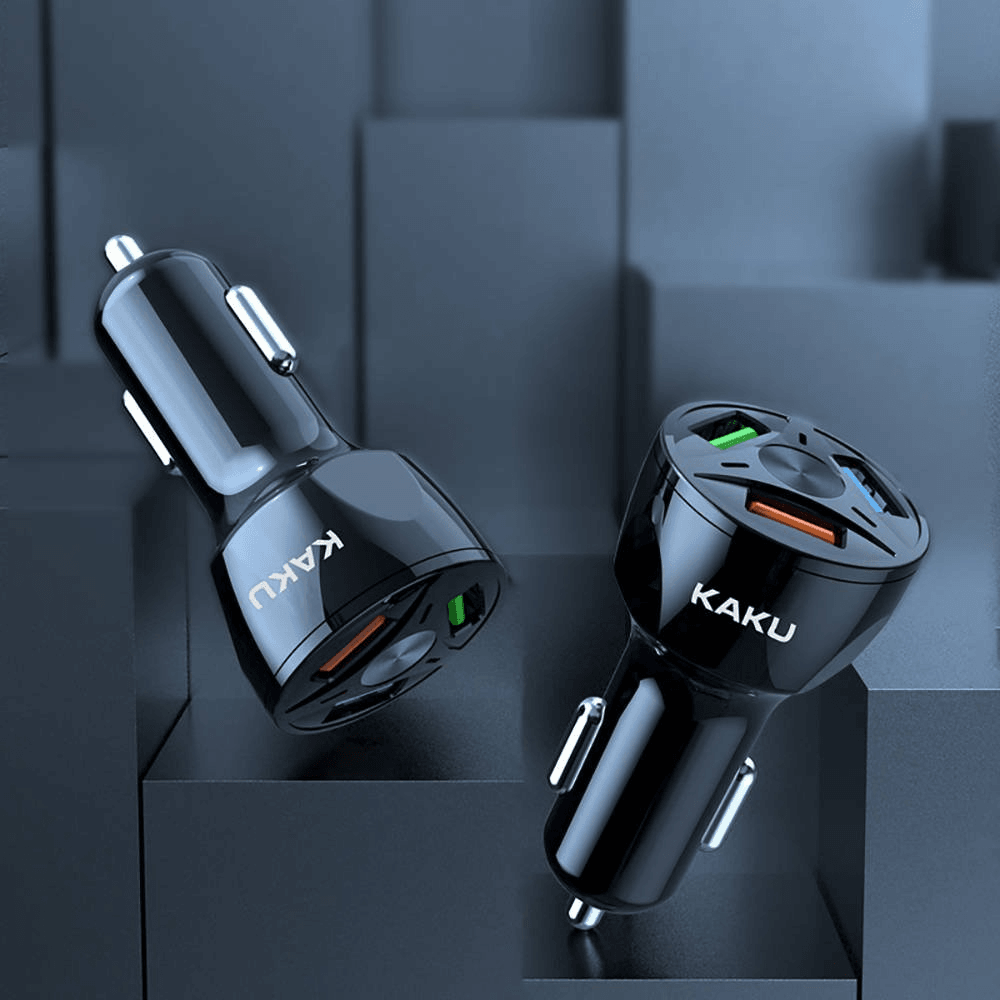 Kaku avtopolnilec KSC-486 3.0 QC v črni barvi omogoča hitro polnjenje vseh naprav z močjo do 20W. Opremljen je s tremi USB vhodi, vključno z enim Qualcomm čipom za pametno polnjenje 3.0. V kompletu je adapter za avto, kar ga naredi idealnega za uporabo na poti.