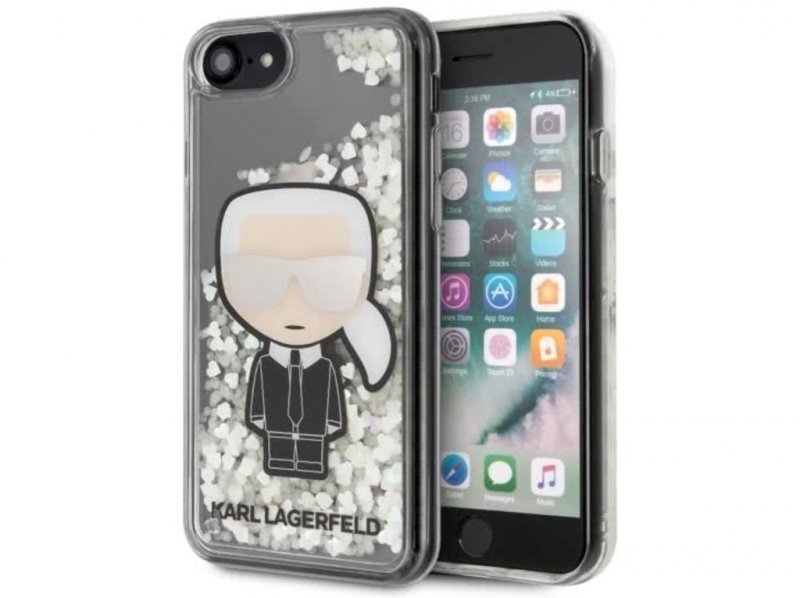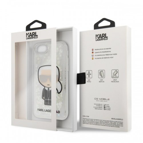 KARL LAGERFELD KLHCI8GLGIRKL za iPhone 6 ali 7 ali 8 ali SE 2020 prozorna trda zaščita z bleščicami - Glow in The Dark - Karl Full body