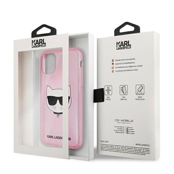KARL LAGERFELD KLHCN61CHTUGLP za iPhone 11 roza zaščita z bleščicami - Choupette s Head