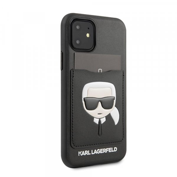 KARL LAGERFELD KLHCN61CSKCBK za iPhone 11 črna silikonska zaščita - Karl s Head Card Slot