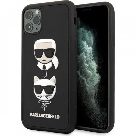 KARL LAGERFELD KLHCN65IK3DKC za iPhone 11 Pro Max črna trda zaščita - Heads 3D Rubber