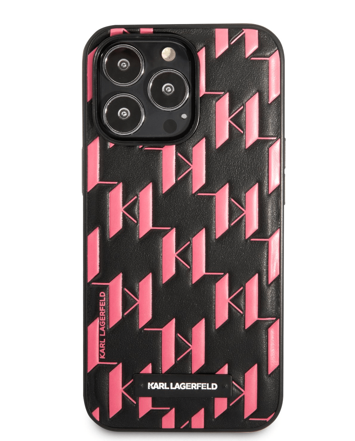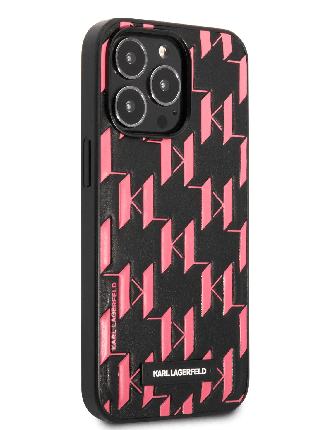 KARL LAGERFELD KLHCP13LMNMP1P za iPhone 13 Pro črno pink zaščita - Monogram Plaque