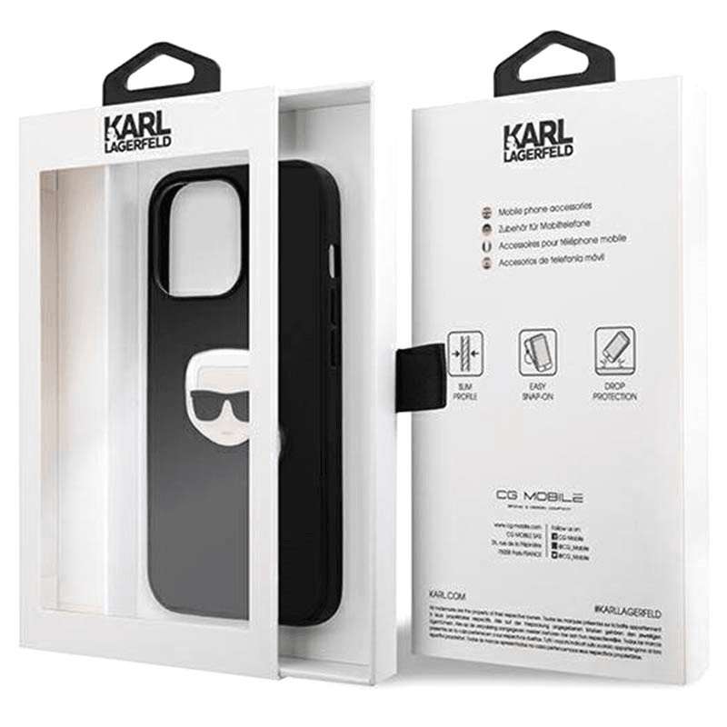KARL LAGERFELD KLHCP13LPKMK za iPhone 13 Pro črna trda zaščita - Karls Head 3D