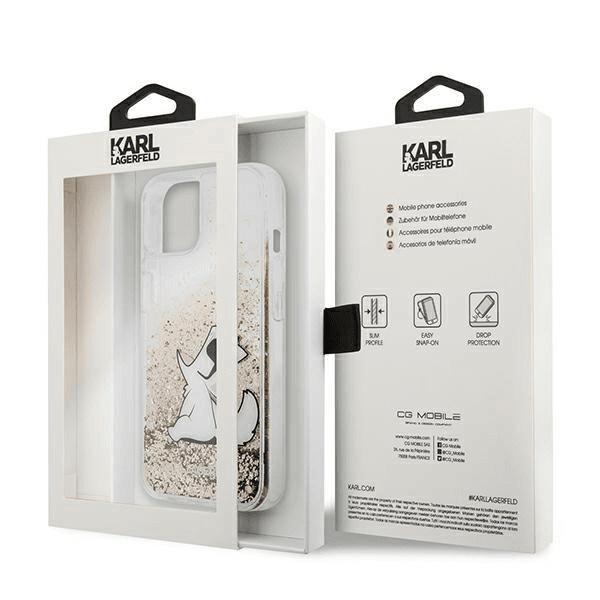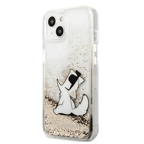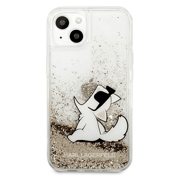 KARL LAGERFELD KLHCP13MGCFD za iPhone 13 6.1 zlata prozorna trda zaščita z bleščicami - Choupette Fun