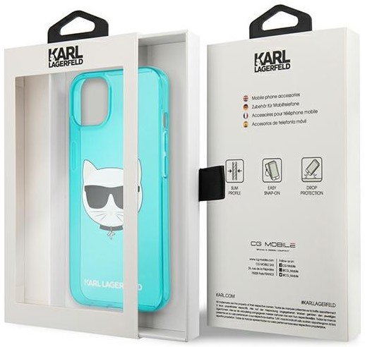 KARL LAGERFELD KLHCP13SCHTRB za iPhone 13 Mini turkizna silikonska zaščita - Choupetts head