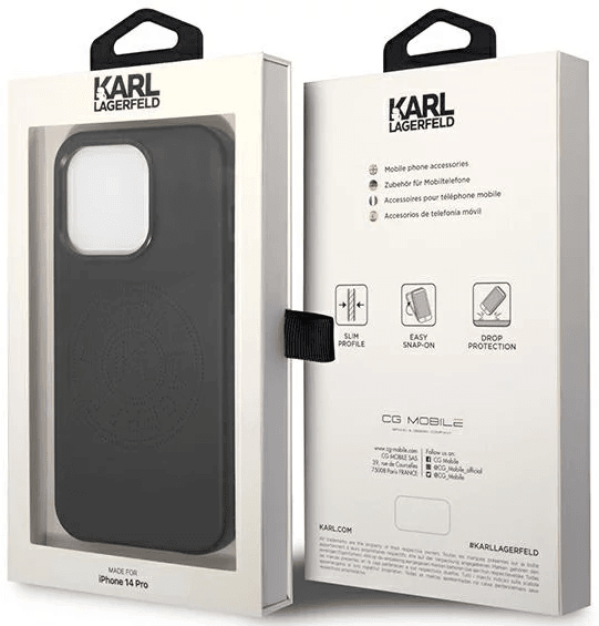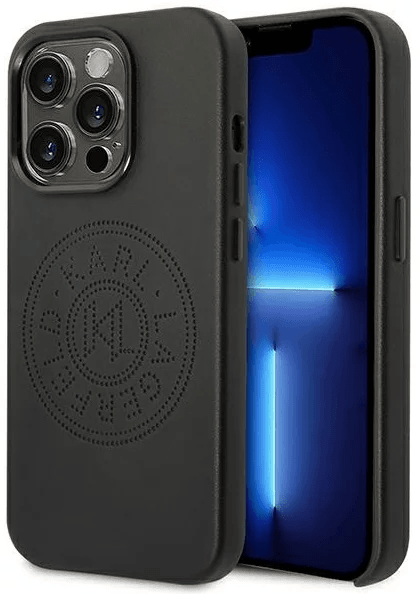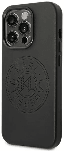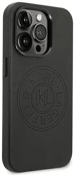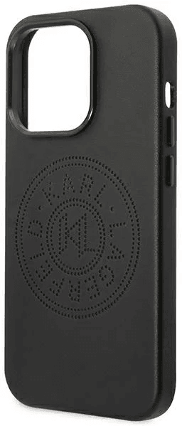 KARL LAGERFELD KLHCP14LFWHK za iPhone 14 Pro črna usnjena zaščita - Perforated Logo