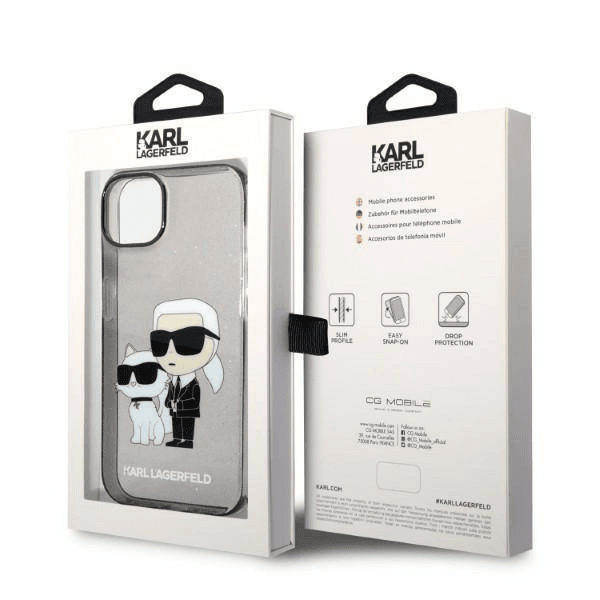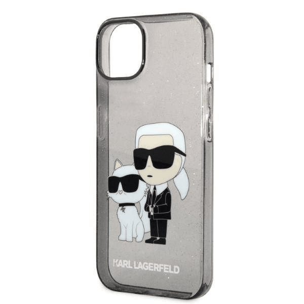 KARL LAGERFELD KLHCP14MHNKCTGK za iPhone 14 Plus prozorno črn ovitek z belščicami - Glitter IML NFT Full Bodies