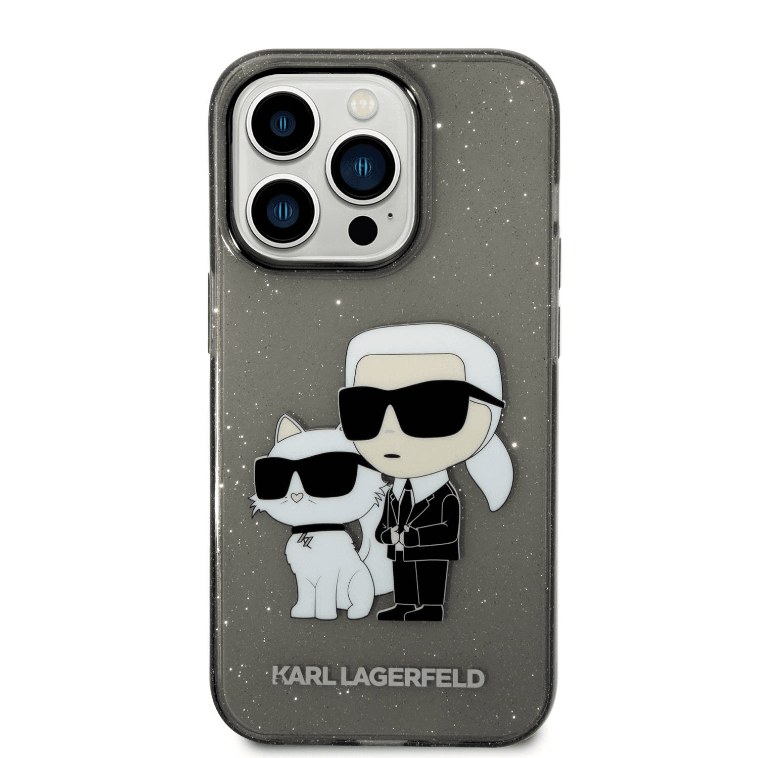 KARL LAGERFELD KLHCP14XHNKCTGK za iPhone 14 Pro Max prozorno črn ovitek z belščicami - Glitter IML NFT Full Bodies