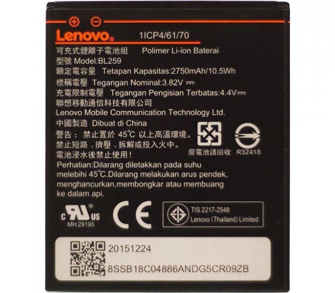 LENOVO Baterija BL259 je originalna baterija, namenjena za modele Lenovo K5 in K5 Plus. Izdelek je pakiran v embalažo dobavitelja, kar zagotavlja kakovost in zanesljivost.