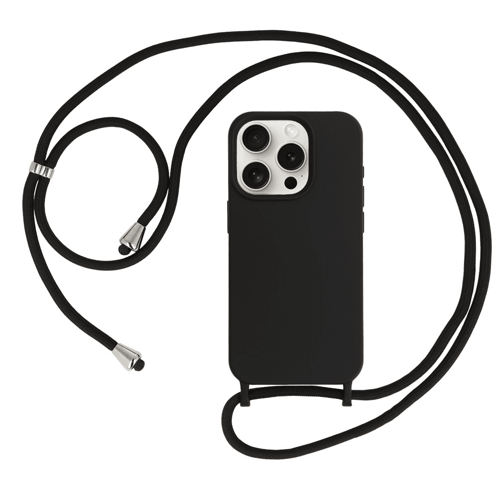 Liquid silikonski ovitek za iPhone 15 - črn z vrvico