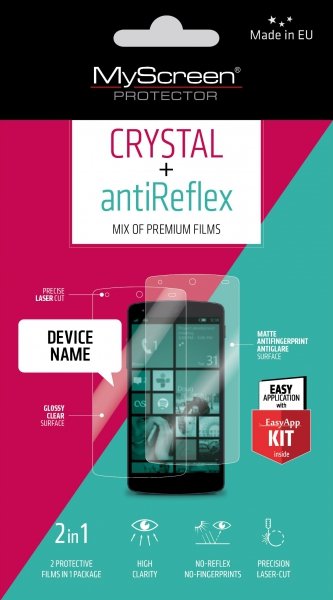 Zaščitna folija My Screen protector za Alcatel One Touch Idol X nudi vrhunsko zaščito pred praskami. V kompletu sta ena AntiReflex in ena Crystal folija, ki zagotavljata antibakterijsko in antirefleksno zaščito. Enostavna namestitev s patentiranim sistemom Easy App.