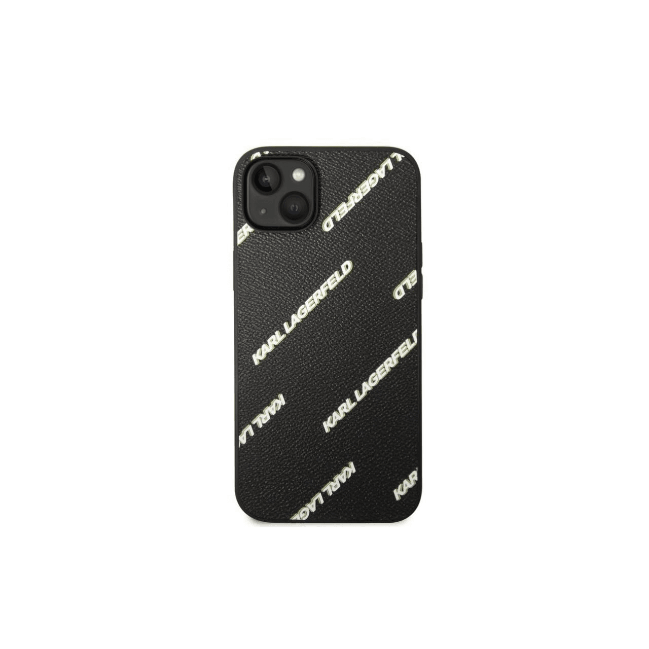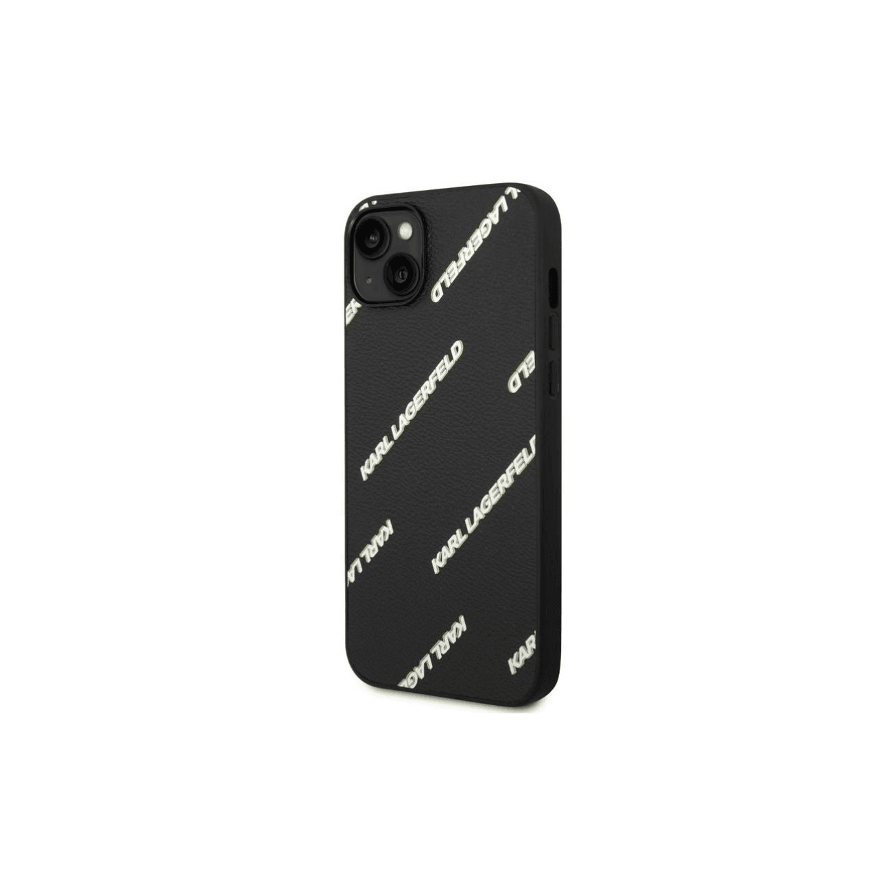 Originalen KARL LAGERFELD ovitek KLHCP14SPGMLKFK za iPhone 14 6.1 črna usnjena zaščita z belim napisom