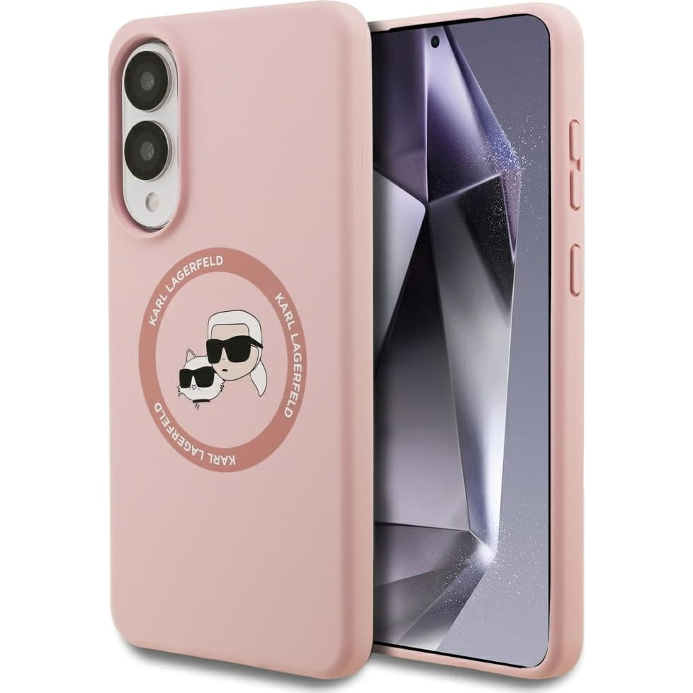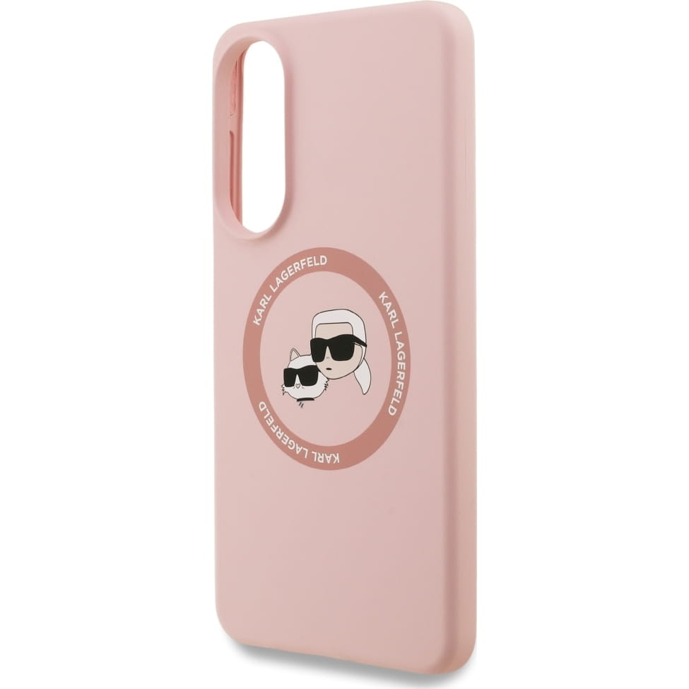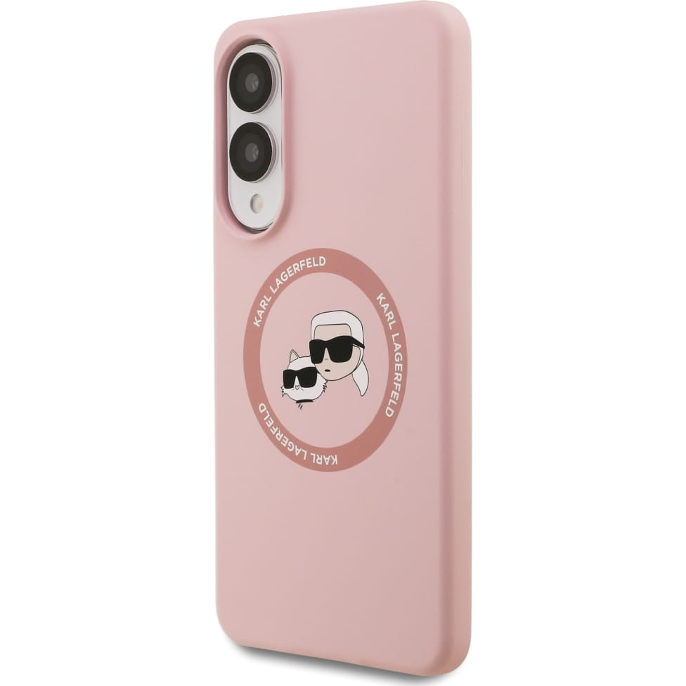 Originalen KARL LAGERFELD ovitek Samsung Galaxy S25 Edge - IML NFT Heads - roza silikonska zaščita MagSafe - KLHMS25ESKCHTCP