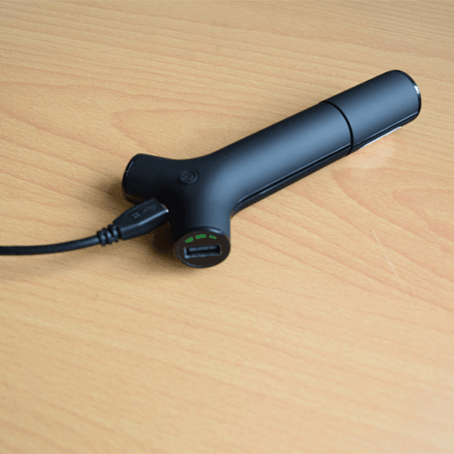 Z dvema hitrima pritiskoma na gumb pa se vklopi LED-svetilka, ki je uporabna pri kampiranju ali zgolj za iskanje ključev! Priložen je tudi pokrovček, s katerim pokrijete polnilno vtičnico, da je polnilec shranjen in bolj priročen za prenašanje.
