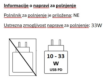Polnjenje: 33 W žično