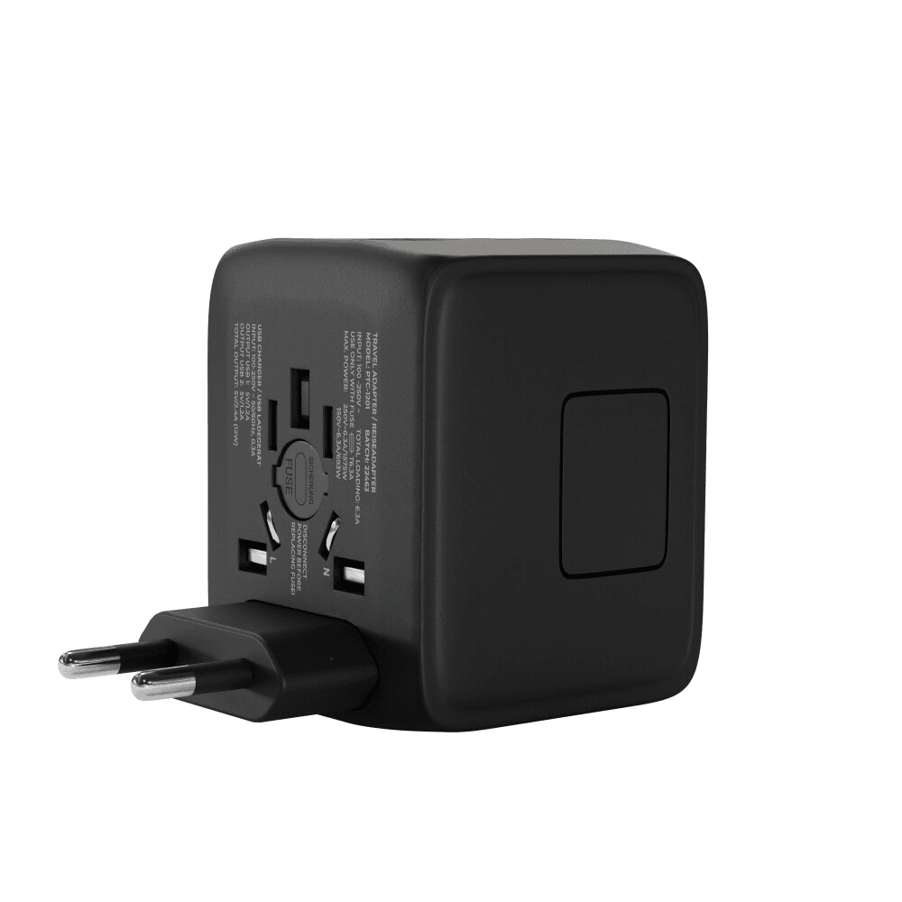 Z Prio svetovnim adapterjem lahko polnite vaše naprave kjerkoli po svetu. S pomojo drsnikov izberete vtičnico, ki jo potrebujete. Vanj pa vstavite vtičnico ali USB kabel za polnjenje