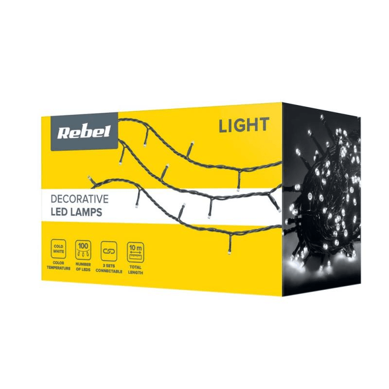 Dolžina 10 m, možno pripenjanje dodatnih lučk (enake vrste) do 3 enote. Lučke so postavljene na 10 cm. Število lučk je 100 kos