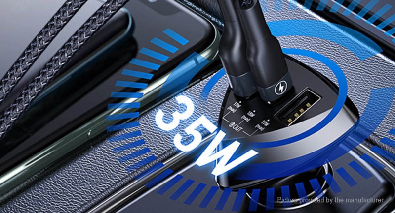 polnilec je primeren za avto vtičnice z napetostjo 12 – 24 V, njegova skupna moč polnjenja je 35W (2 x USB-A: do 17 W, USB-C: do 18 W )