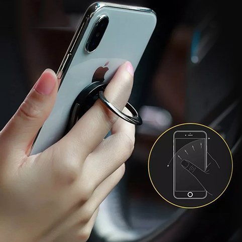 Ring držalo lahko uporabljate direktno na telefonu, lahko pa ga nalepite na zaščitni ovitek telefona, kjer bo imel povsem enako funkcijo.